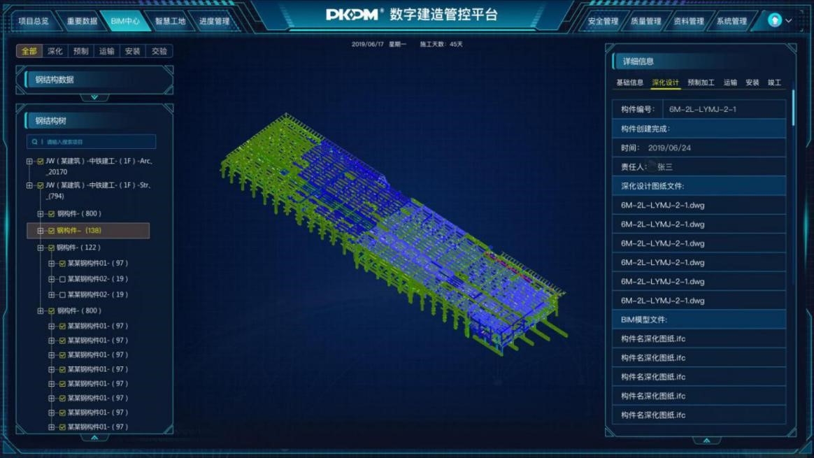 钢结构全生命周期智慧建造平台,根据钢结构生产企业的管理特点,以信息化、BIM、物联网、云计算、大数据等技术为支撑,实现了钢结构项目设计、生产、运输、施工、运维等全过程流程化、信息化、智能化管理。 基于BIM的钢结构全生命周期管理,打通设计、生产,对接施工安装流程,包括:工厂管理、项目管理、合同管理、设计管理、计划管理、生产管理、材料管理、质量管理、安全管理、技术管理、设备管理、运输管理、现场管理、资料管理、堆场管理、BIM管理等,实现精细化管理、一体化管理。